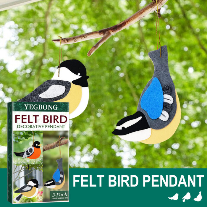 Garden branch hanging ornaments, cartoon felt cloth colorful birds, balcony and window decorations.